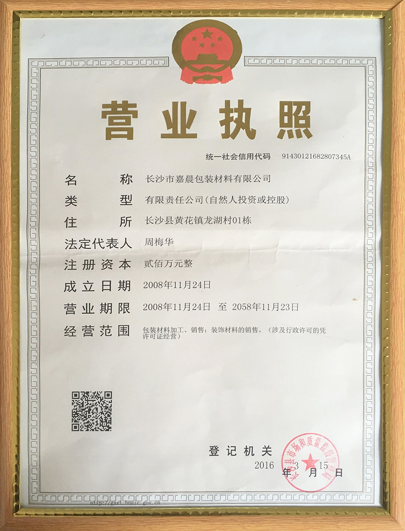 長沙市嘉晨包裝材料有限公司是一家集研發(fā)、生產(chǎn)、銷售為一體的專業(yè)生產(chǎn)包裝材料的企業(yè)。